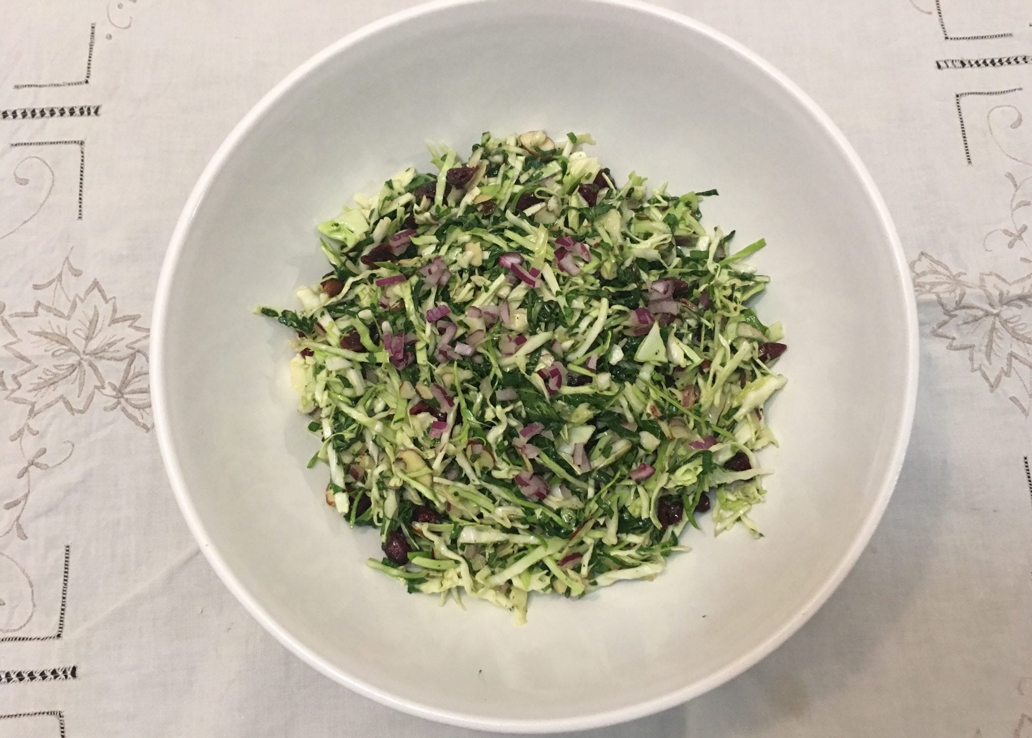 I call my slightly adapted version “Gratitude Slaw”. because I knew on first eating that I would not want to wait for a whole year to make this again. While it’s a fantastic addition to a standard Thanksgiving menu with lots of inviting dishes to enjoy and more sweets than fresh green savories, it’s a welcome and delicious salad to make and enjoy and share all seasons, all occasions.